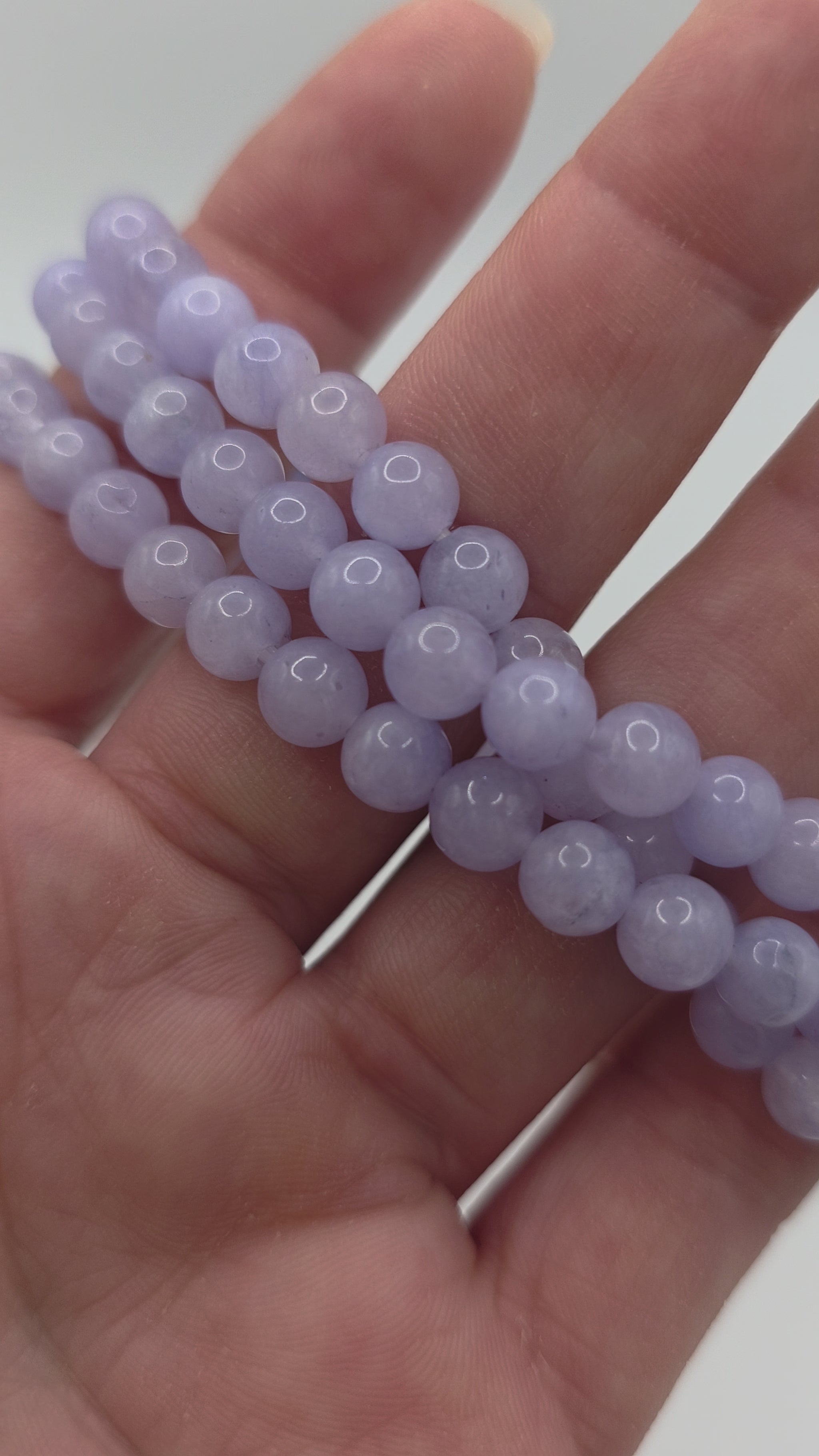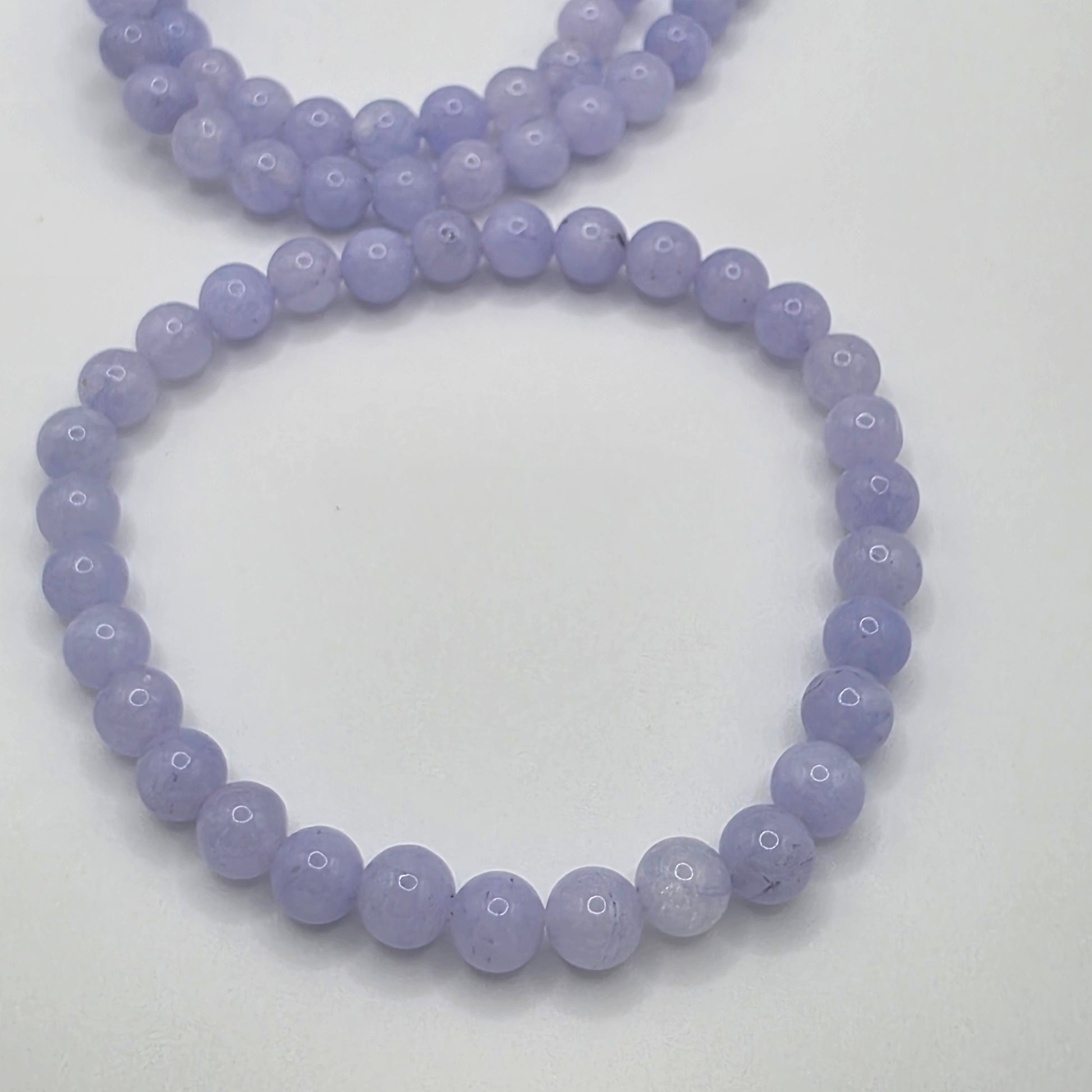 Dieses zartblau-lila Angelit-Armband wirkt wie eine himmlische Berührung – beruhigend, tröstend, erhebend. Seine sanften Perlen erinnern an den wolkenlosen Morgenhimmel und schenken dir das Gefühl, von deiner geistigen Führung behütet und begleitet zu sein.